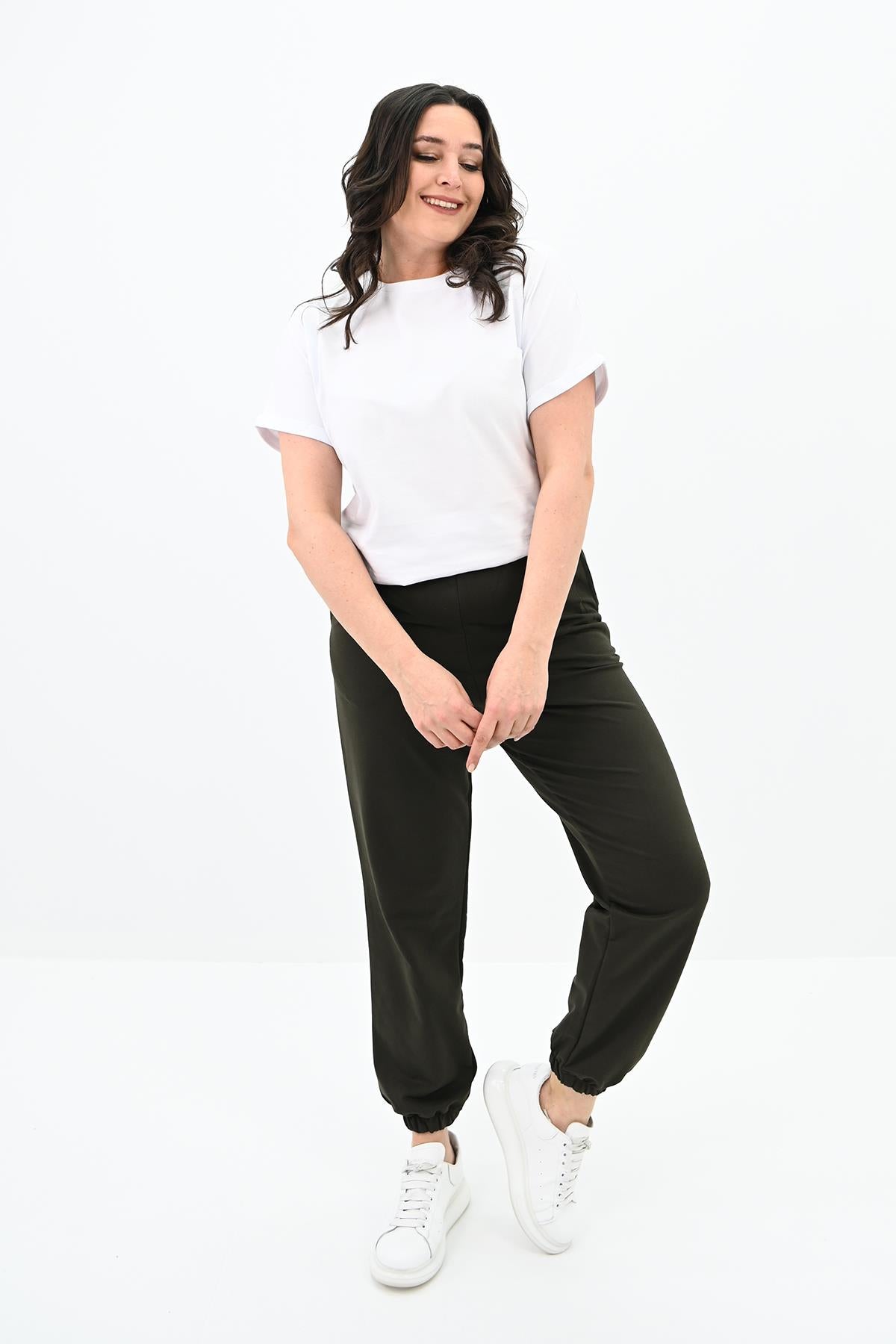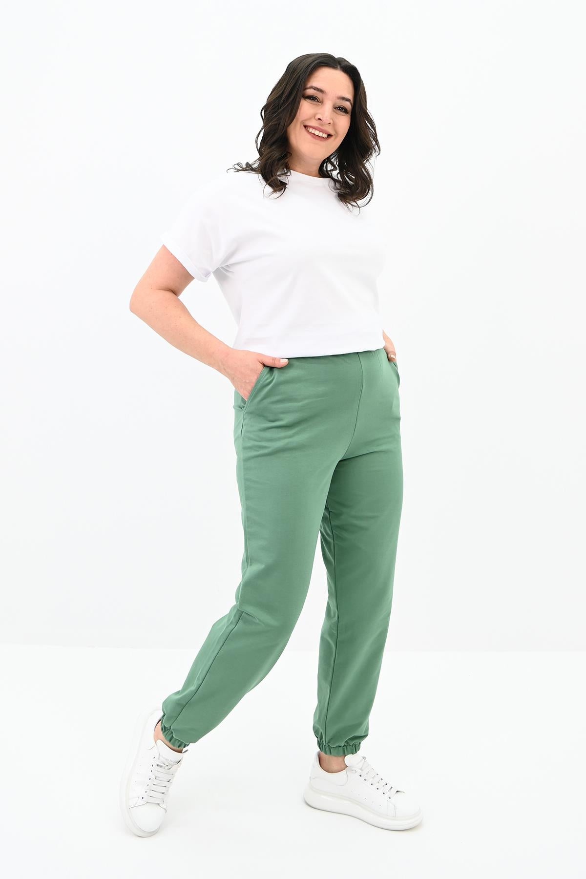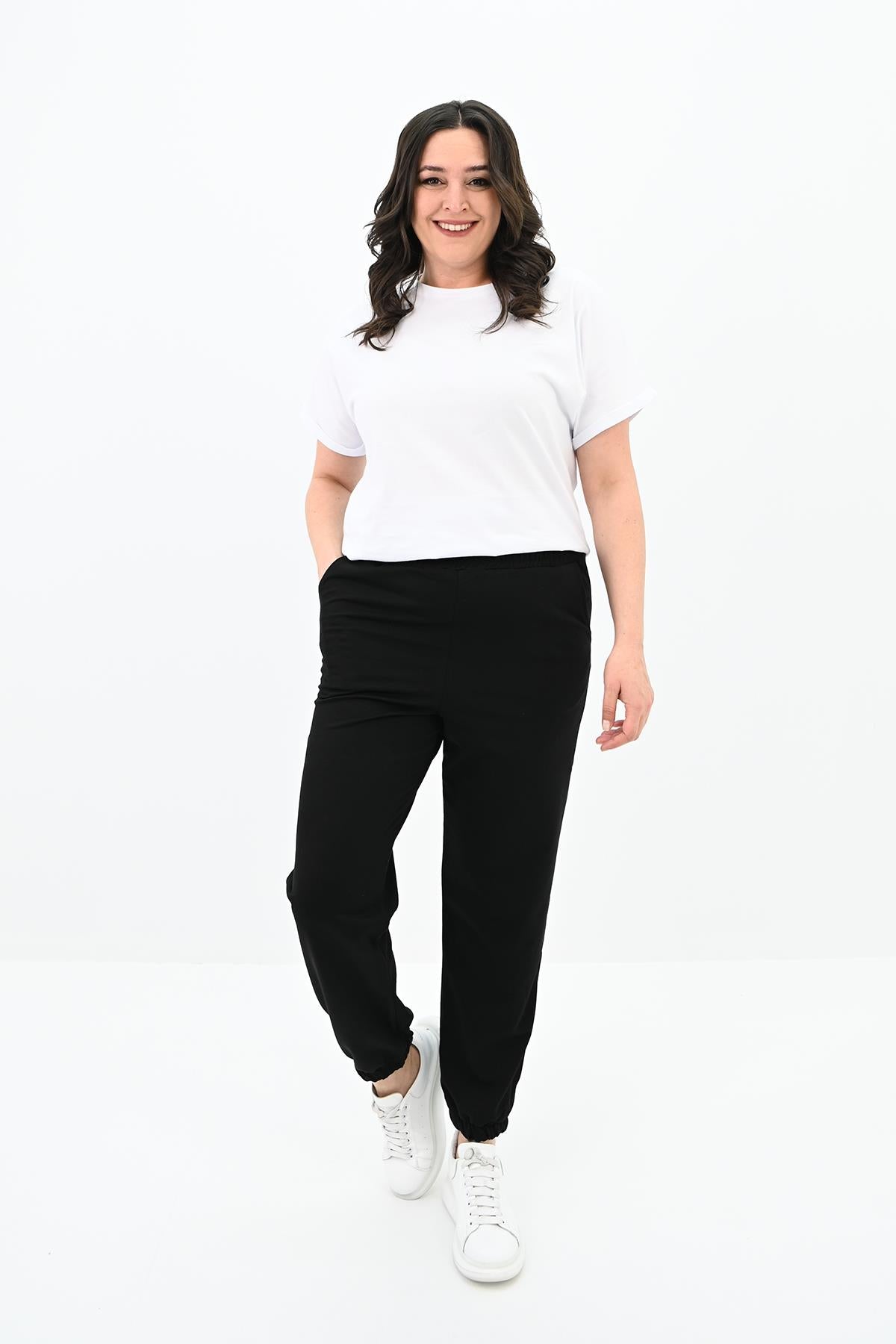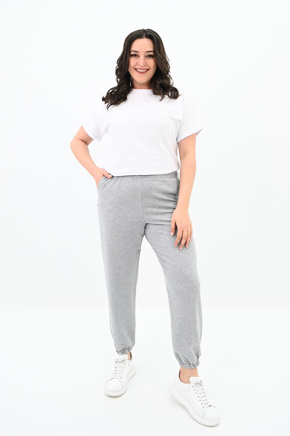 Kadın Büyük Beden Yüksek Bel Eşofman Takımı, 42-50 bedene uyumludur. Yüksek bel ve paçası lastikli olan bu takım, rahatlığı ön planda tutar ve hareket özgürlüğü sağlar. Ayrıca cep detayı da takıma kullanışlı bir özellik katar. Pamuklu kumaştır. Hem spor yaparken hem de günlük kullanımda rahatlık sunar. Manken ’in üzerindeki beden 44 bedendir. (Bedenler arası +/- 2cm fark olmaktadır.)